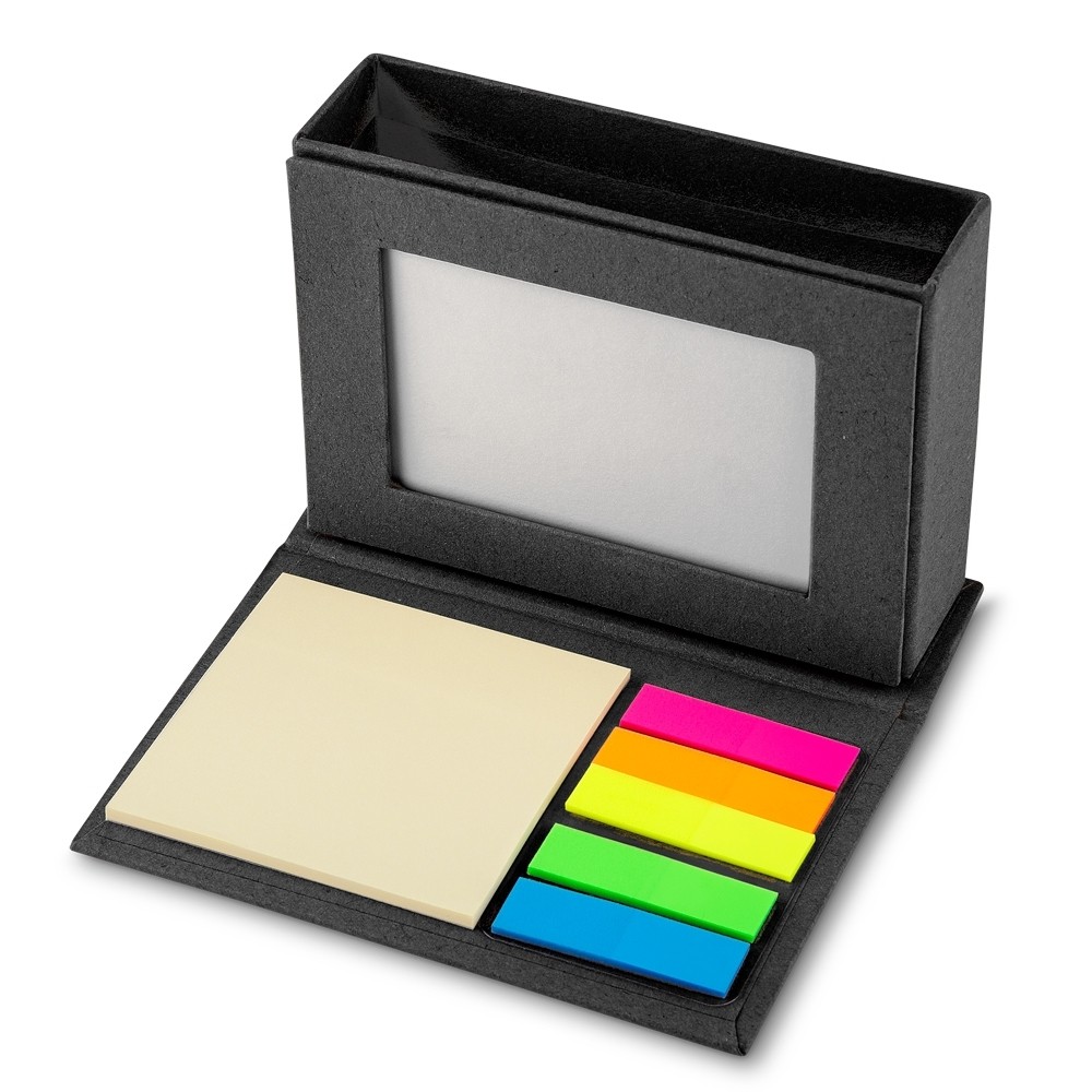 Bloco de anotações ecológico com autoadesivos, porta caneta e porta retrato. Contém conjunto de cinco bloquinhos autoadesivos coloridos, bloco autoadesivo para anotações , porta canetas e porta retrato.