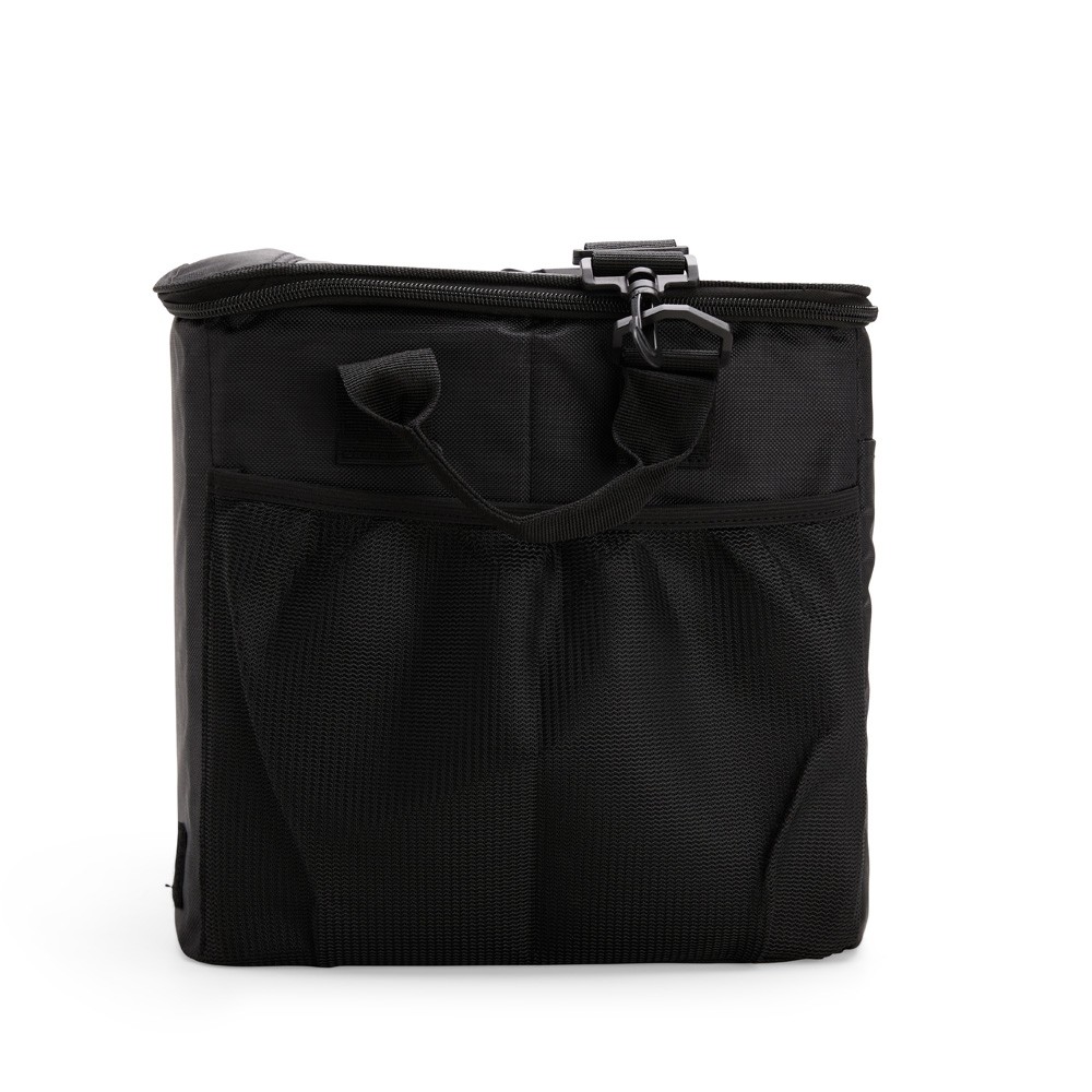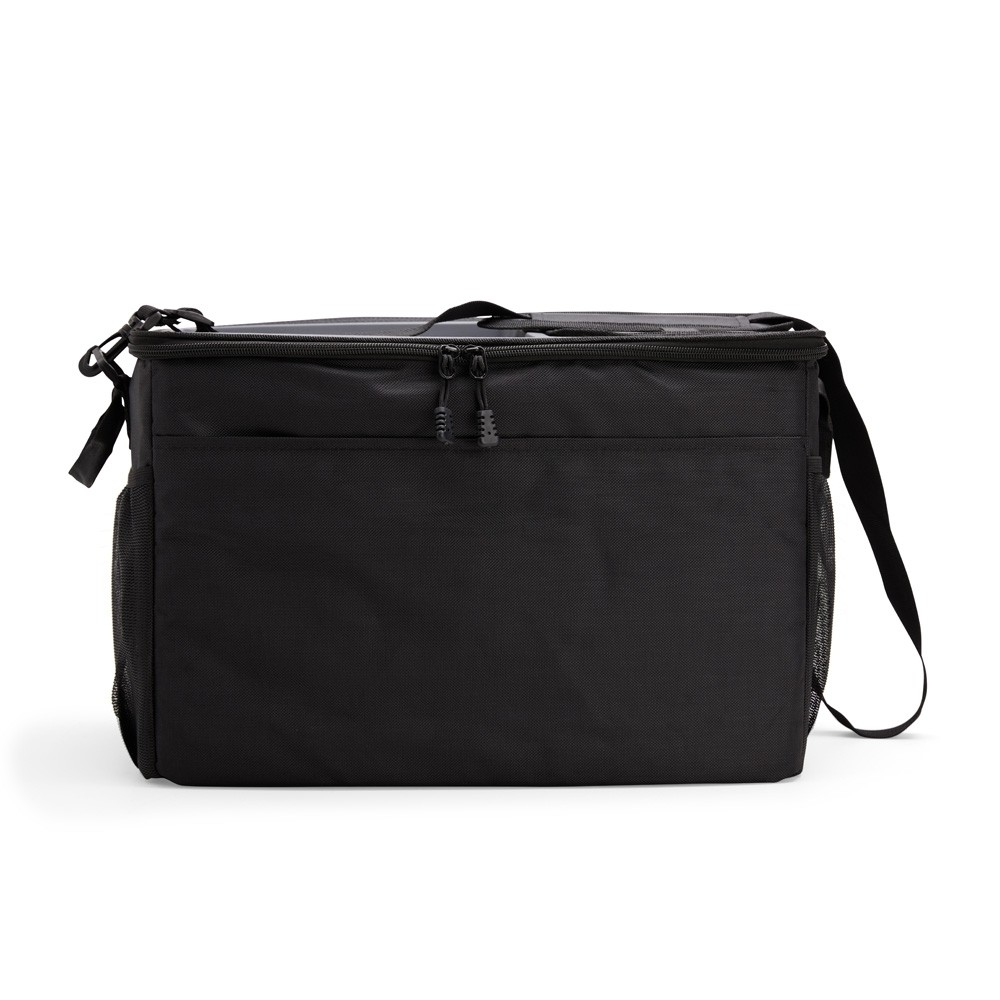 Bolsa térmica confeccionada em poliéster 840D resistente à água e capacidade de até 33 litros. Possui revestimento térmico interno em PEVA atóxico, estrutura dobrável reforçada e tampa rígida em plástico PP com espaço para copos e abertura com fechamento em velcro. Conta ainda com três bolsos externos: um frontal com fechamento em velcro e dois laterais em tela de nylon com elástico. Acompanha alça transversal ajustável com apoio para ombro.