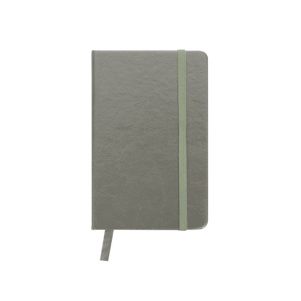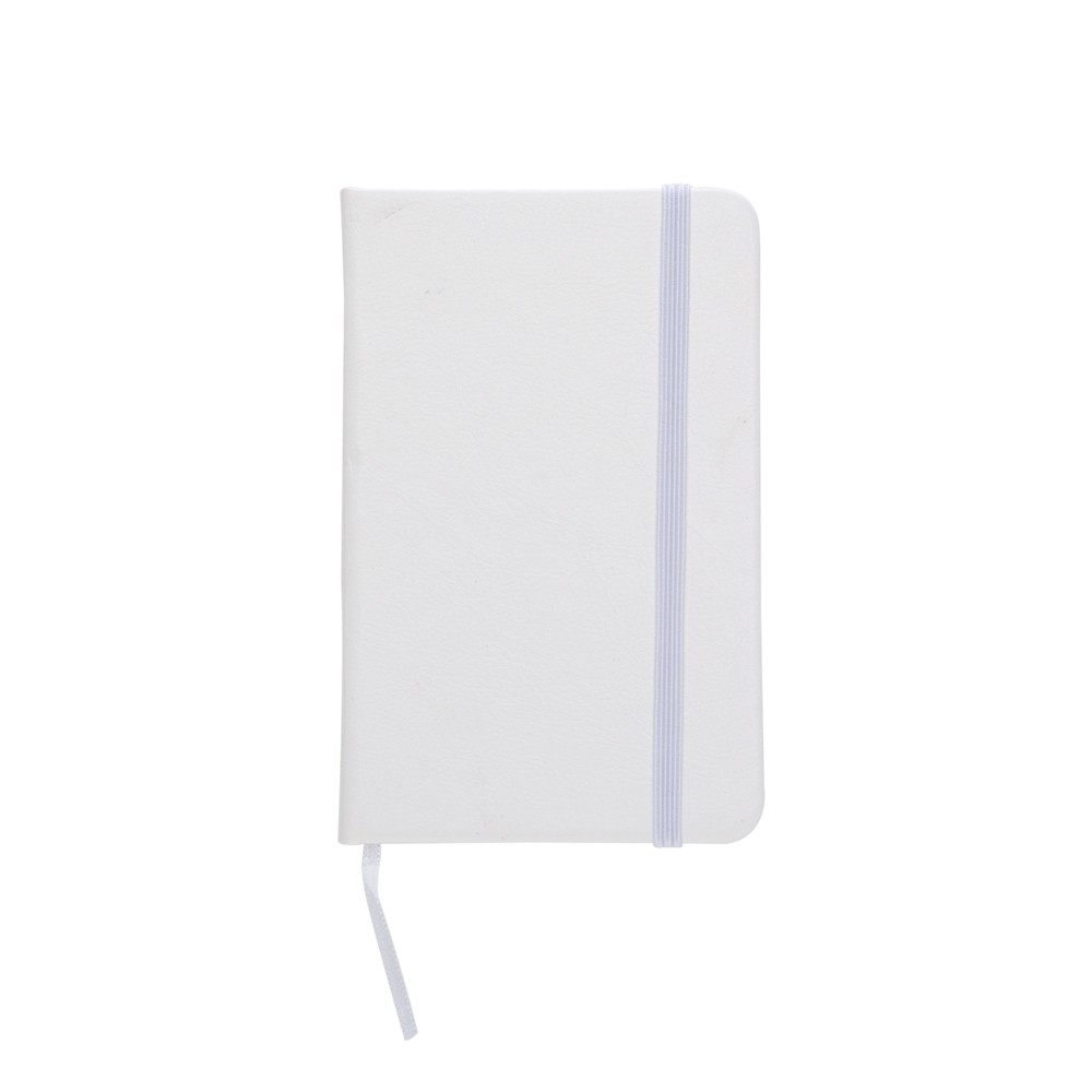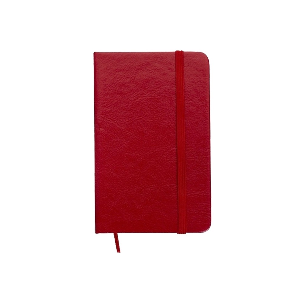 Caderneta de couro sintético com elástico para lacre e marcador de página em cetim, contém 80 folhas pautadas. Especificações: - Altura  14,4 cm - Largura  8,8 cm - Espessura  1,4 cm - Medidas aproximadas para gravação(CxL)  13,4 cm x 8,1 cm - Peso aproximado(g)  108