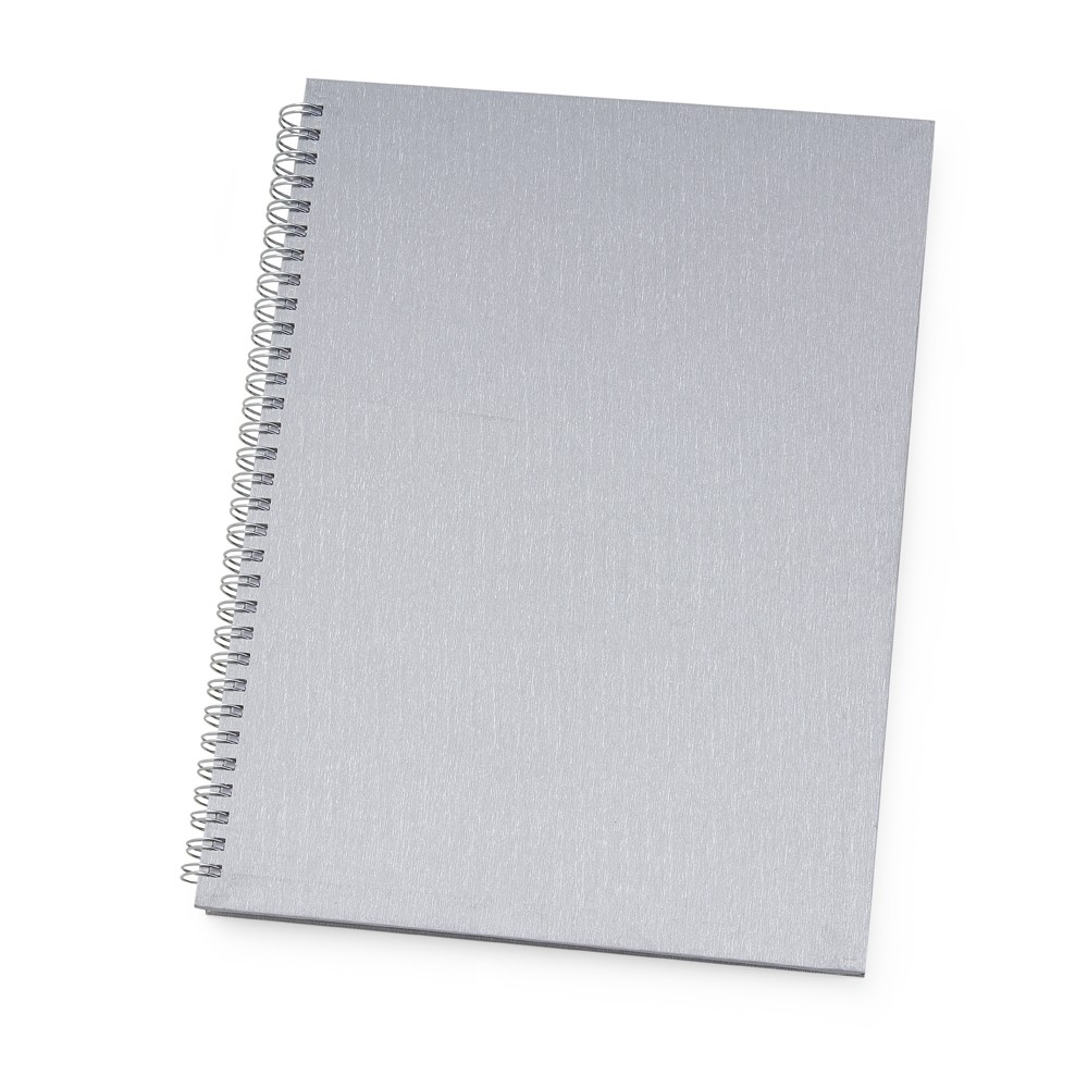 Caderno grande percalux com pintura metalizada e wire-o prata. Miolo permanente e folhas para preenchimento de dados pessoais, comerciais e contatos. OBS.: PEDIDOS APENAS MÚLTIPLOS DE 10 PEÇAS!