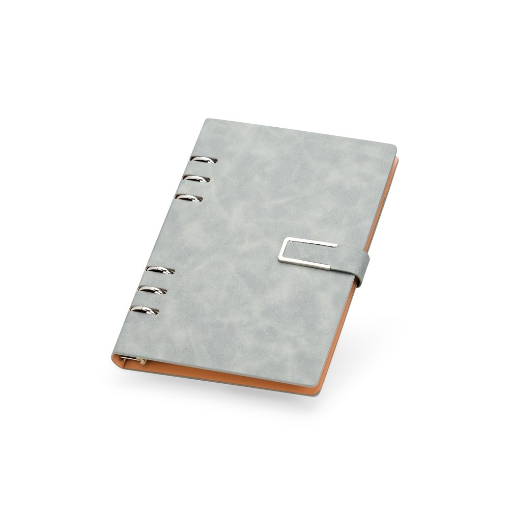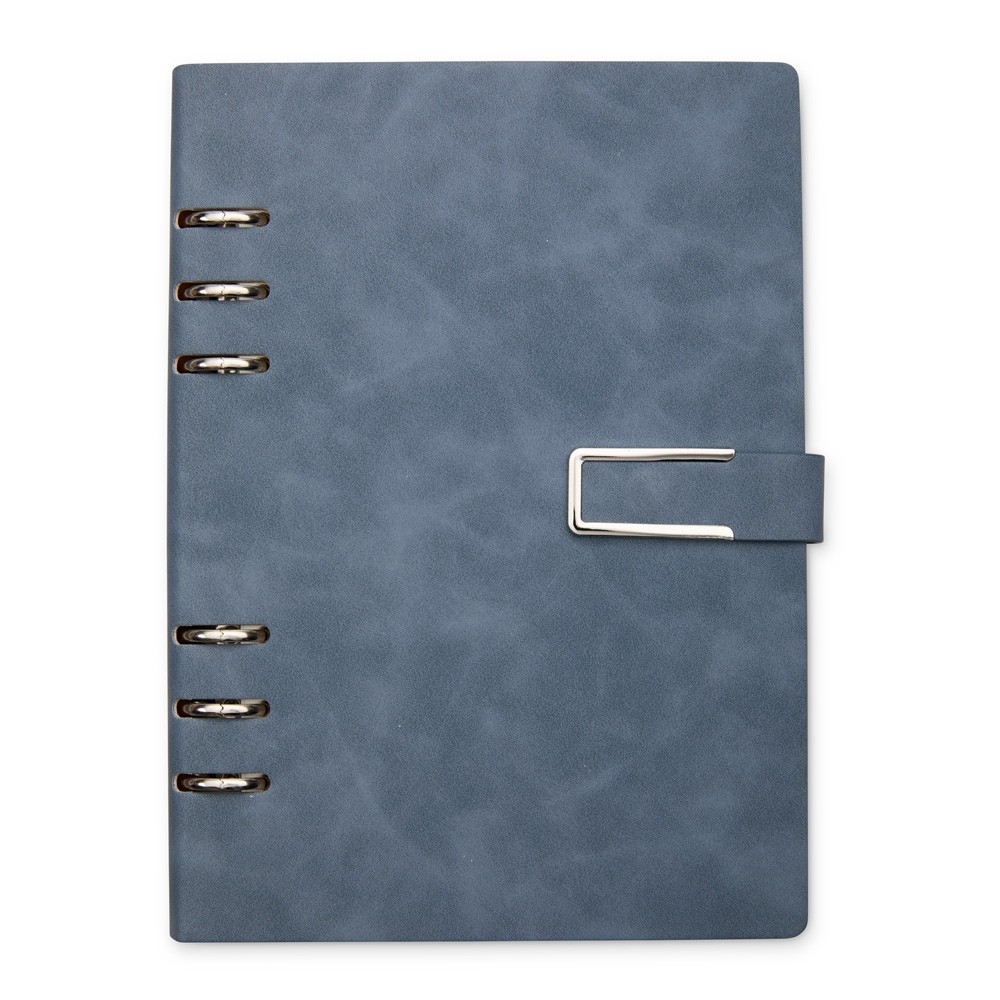 Organize todas as anotações de forma prática com o nosso caderno fichário em PU. Com um design super elegante, ele tem capa dura no formato A5 e um fechamento de fivela imantado que protege as 119 folhas em papel marfim. Os seis anéis permitem retirar e reorganizar as folhas sempre que precisarem, deixando tudo do seu jeito. E para completar, a primeira folha traz um espaço especial para dados pessoais. Esse caderno fichário é a escolha perfeita para manter tudo organizado e com muita sofisticação.