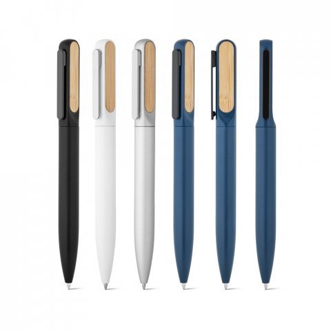 Esferográfica em cortiça e alumínio com clipe. Até 1,5 km de escrita. Fornecida com embalagem presente em cartão.