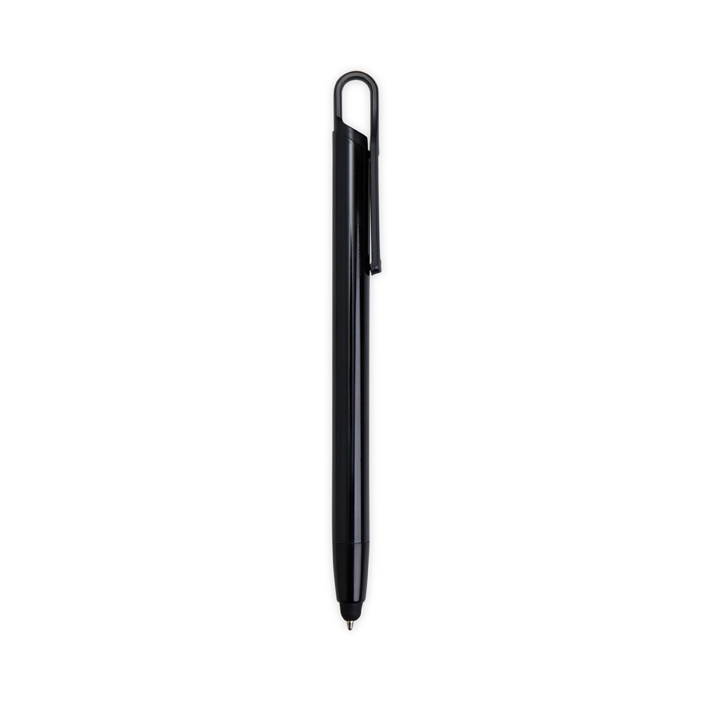 Caneta metálica com clipe plástico e ponteira touch, carga esferográfica azul 1.0mm e acionamento por clique. Especificações: - Largura  1,3 cm - Comprimento  14,3 cm - Medidas aproximadas para gravação(CxL)  0,7 cm x 4 cm - Peso aproximado(g)  15