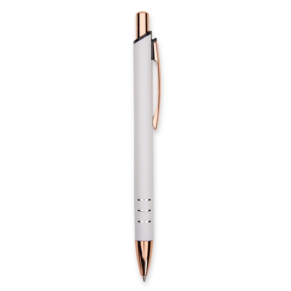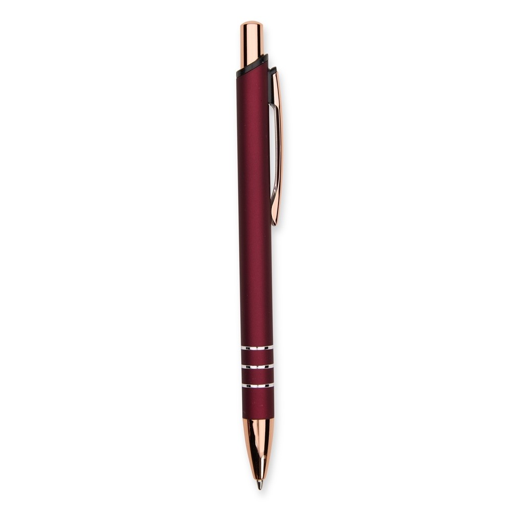 Caneta metálica com acionamento por clique e carga esferográfica azul de 1,0mm, oferecendo uma pegada leve para uma escrita mais precisa. Especificações: - Largura  1,5 cm - Comprimento  14,2 cm - Medidas aproximadas para gravação(CxL)  0,8 cm x 7 cm - Peso aproximado(g)  16