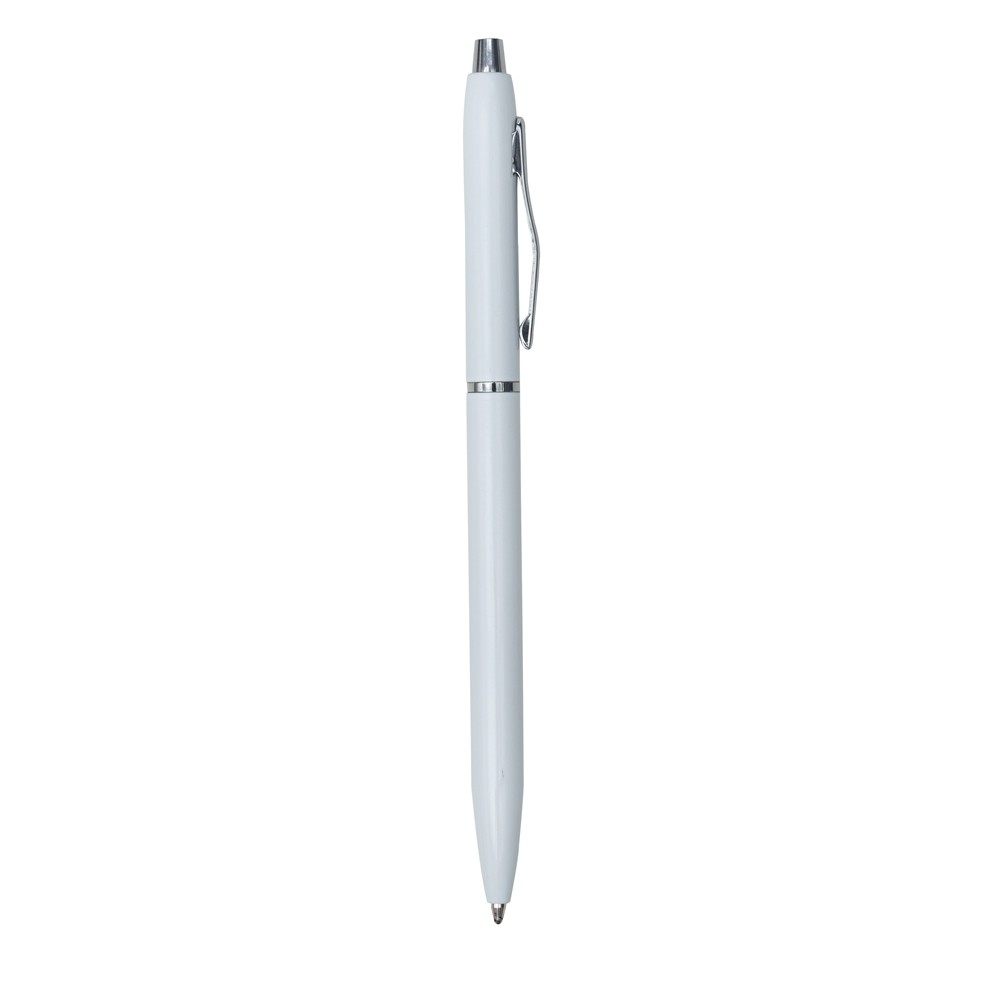 Caneta metálica com carga esferográfica azul e acionamento por clique. OBS.: PEDIDO APENAS MÚLTIPLO DE 100 PEÇAS!