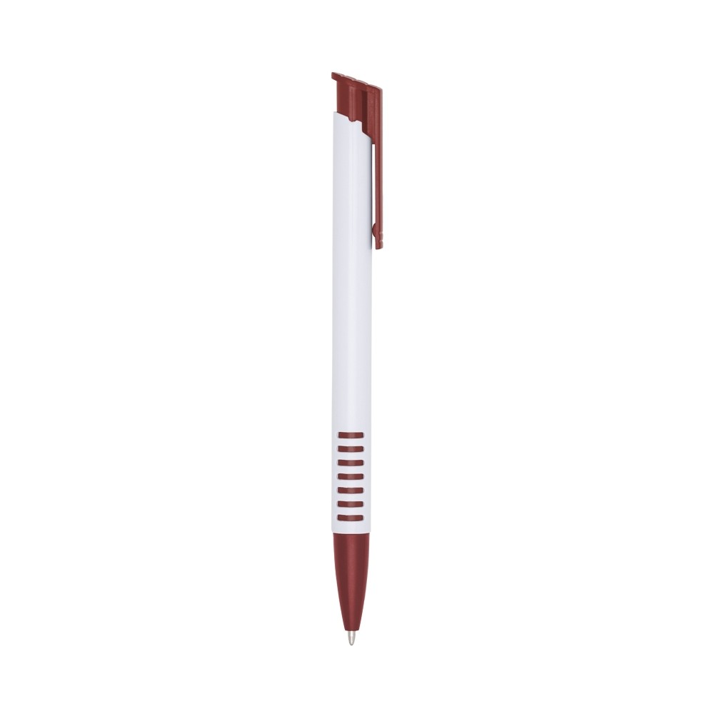 Caneta plástica com carga esferográfica azul 1.0 mm e acionamento por clique.