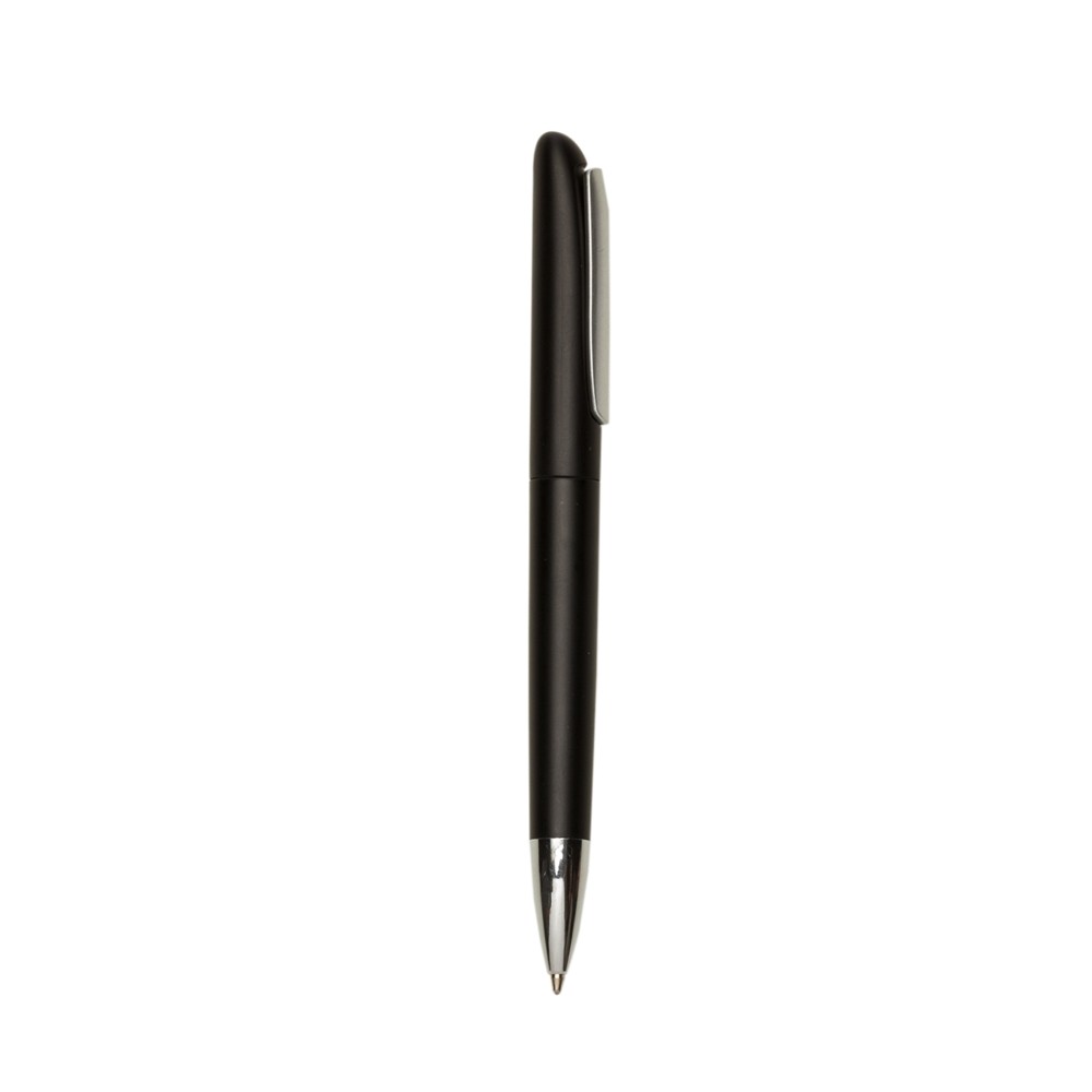 Caneta plástica com carga esferográfica azul 1.0 mm e acionamento por clique no clipe.