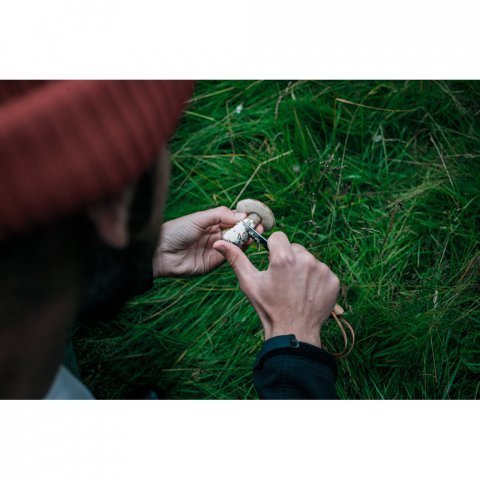 Canivete com lâmina em aço inox e cabo em bambu, com fecho de segurança. Contém uma pega em corda para fácil transporte. Fornecido em caixa presente de papel kraft reciclado. Certificação EU Food Grade. A cor e o resultado da impressão nos materiais naturais pode variar entre produtos. 98 x 21 x 13 mm | Caixa: 33 x 15 x 110 mm