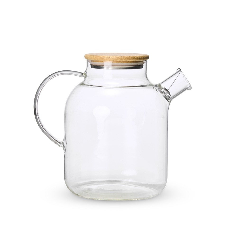 Chaleira em vidro borossilicato e capacidade máxima de 1,8 litro. Suporta variações de temperatura, pode ser levada a fogo baixo. Possui tampa em bambu com vedação para conservar a temperatura dos líquidos por mais tempo. Acompanha filtro de bico em alumínio.