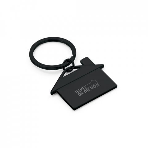 Chaveiro em metal em formato de casa. Fornecido em caixa presente de papel kraft reciclado. 49 x 36 x 3 mm