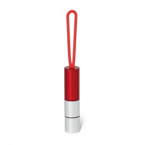 Chaveiro Lanterna em alumínio com 1 LED, porta comprimidos e fita em silicone. Incluso 3 pilhas LR44. ø17 x 73 mm | Pega de silicone: 60 mm