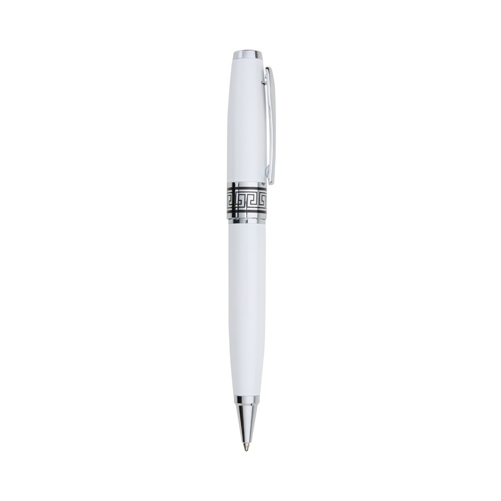 Conjunto caneta e lapiseira em estojo de cartonagem com placa central para personalização. Clip metal e anel central possui: anel fino prata, anel preto fino e um anel maior prata com relevo e acionam por giro. Estojo revestida com espuma na parte interna.