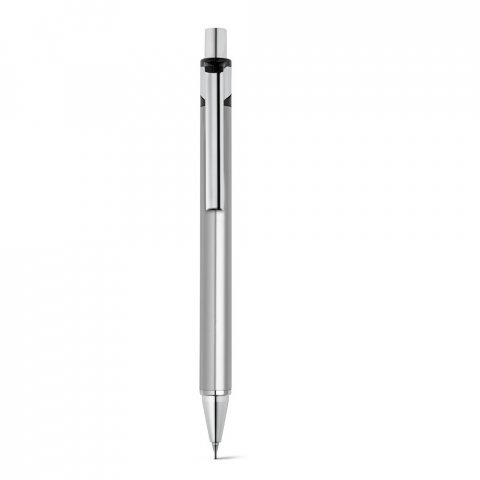 Conjunto de esferográfica e lapiseira em alumínio. Escrita em azul até 1,5 km. Lapiseira com grafite 0.5 mm. Incluso estojo. ø11 x 137 mm | Estojo: 165 x 50 x 24 mm