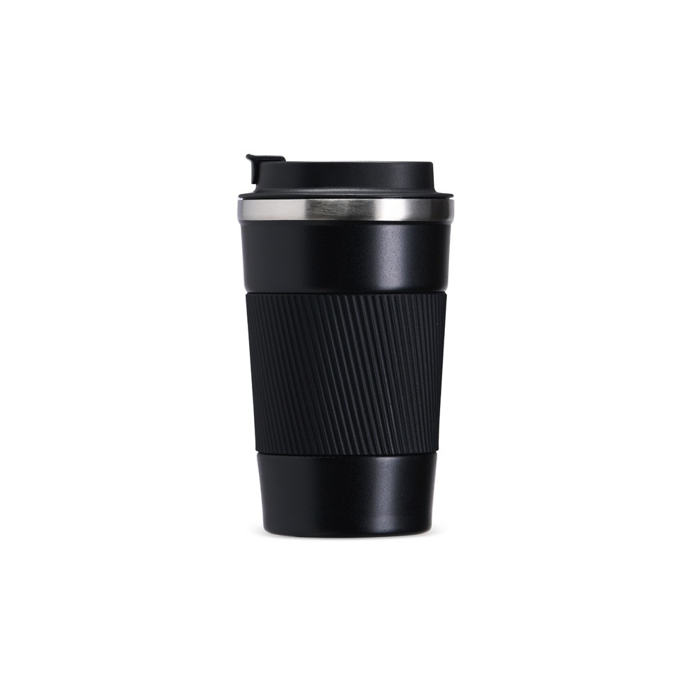 Copo térmico em inox 304 com pintura eletrostática, base antiderrapante e capacidade máxima de 350ml. Possui estrutura de parede dupla e vedação a vácuo, permitindo a conservação da temperatura de líquidos por mais tempo. Conta ainda com tampa rosqueável em plástico com trava protetora no bocal e luva removível em silicone. Especificações: - Altura  15,5 cm - Largura  8,9 cm - Circunferência  26,8 cm - Medidas aproximadas para gravação(CxL)  2,5 cm x 8 cm - Peso aproximado(g)  256