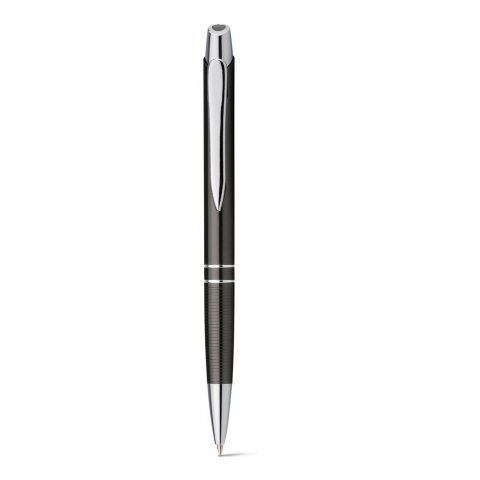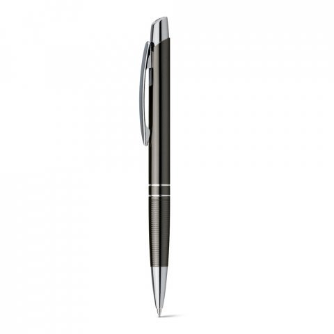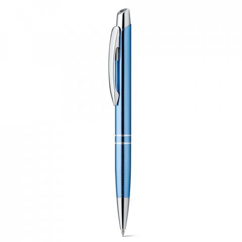 Esferográfica em alumínio com clipe de metal. Disponível numa variada gama de cores. Escrita em azul até 1,5 km. ø11 x 139 mm