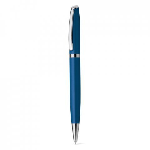 Esferográfica em alumínio com mecanismo twist e clipe. Escrita em azul até 1,8 km. ø11 x 140 mm