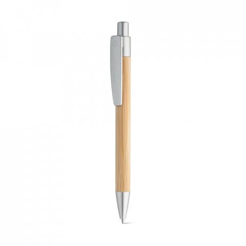 Esferográfica em bambu com clipe. Escrita em azul. Por ser um produto composto por materiais naturais, a cor e tamanho do produto e o resultado da impressão podem variar entre produtos. ø11 x 142 mm