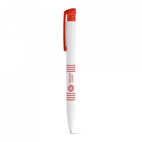 Esferográfica em ABS com acabamento brilhante e clipe translúcido colorido. Até 1,5 km de escrita. ø11 x 136 mm