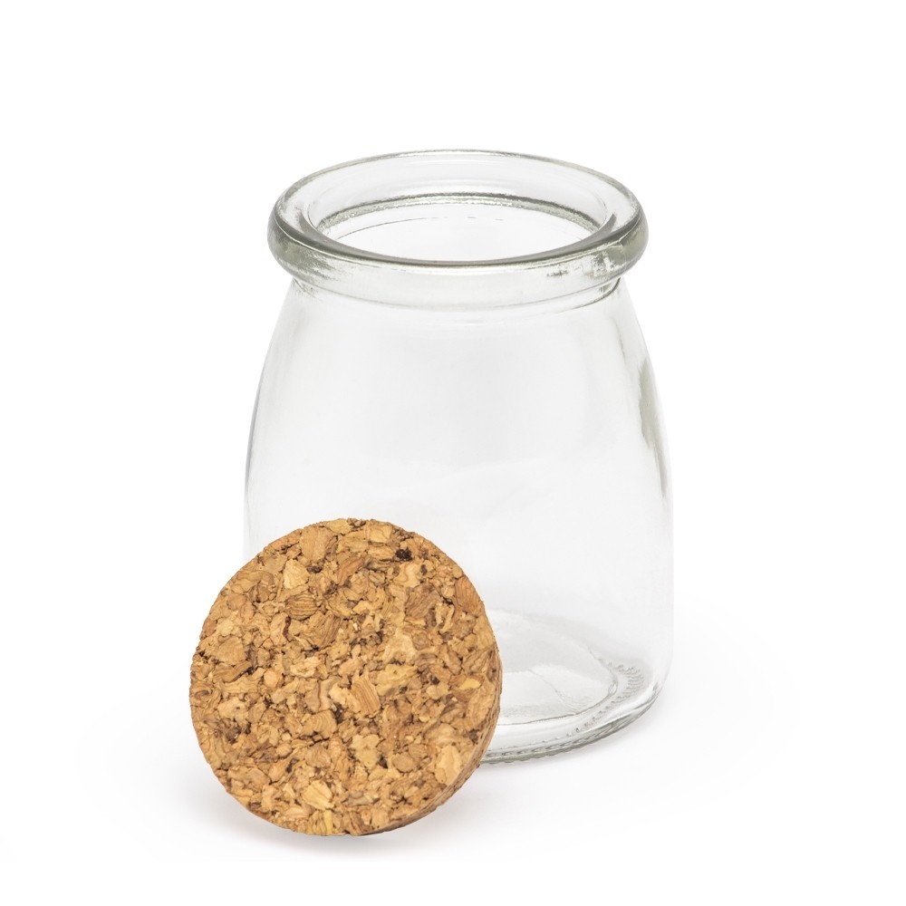 Frasco de vidro com capacidade de 200ml, tampa de cortiça. Especificações: - Altura  9 cm - Largura  7 cm - Circunferência  22 cm - Medidas aproximadas para gravação(CxL)  4 cm x 3 cm - Peso aproximado(g)  157