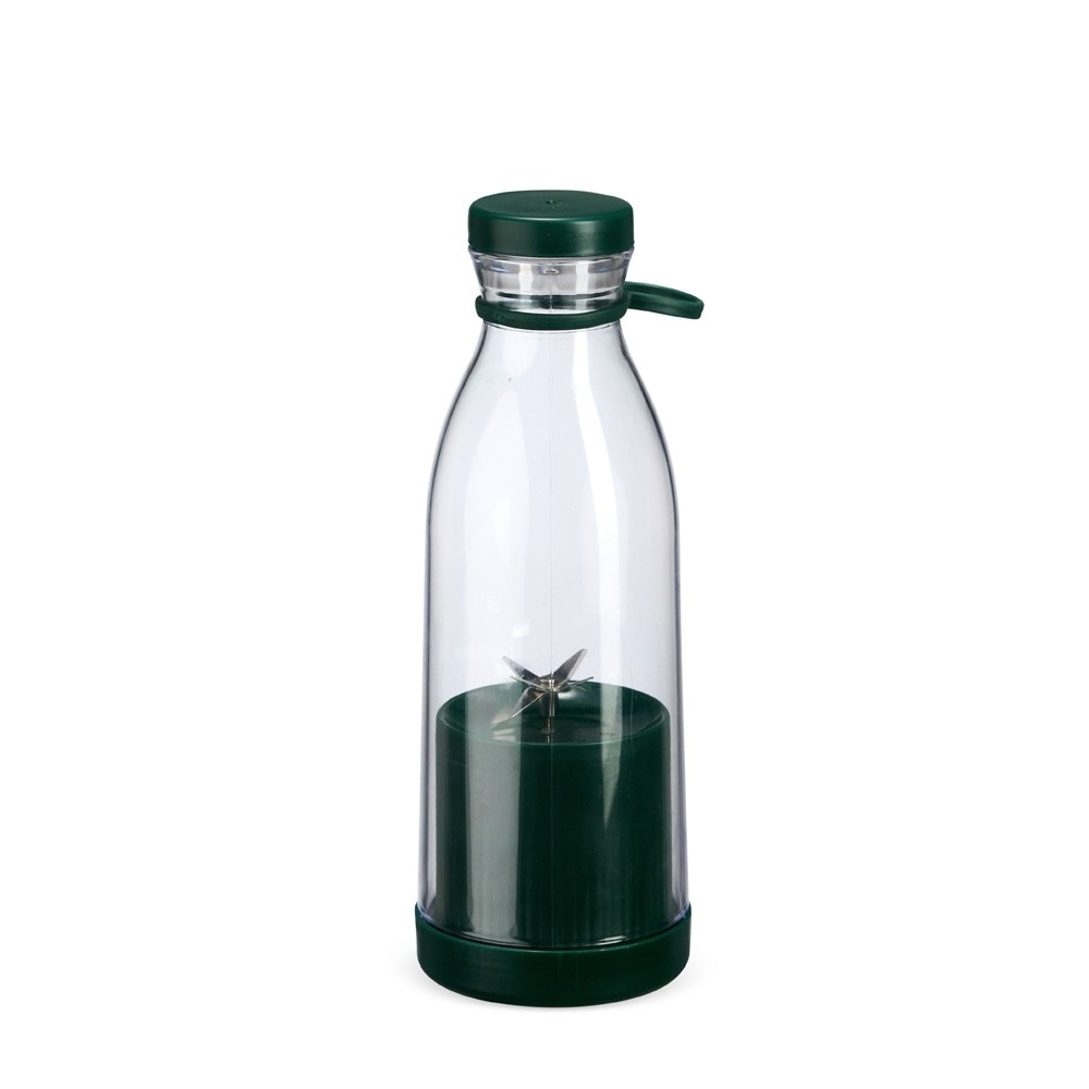 Garrafa plástica com base misturadora para frutas com capacidade máxima de 380ml. Possui base rosqueável com lâminas em inox acionadas por botão, permitindo a mistura de frutas com líquidos, além de tampa rosqueável e alça removível em silicone para transporte. Observação: Para que o triturador funcione corretamente, o volume de frutas e líquidos não deve ultrapassar 300ml.