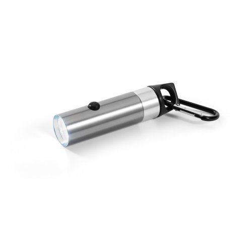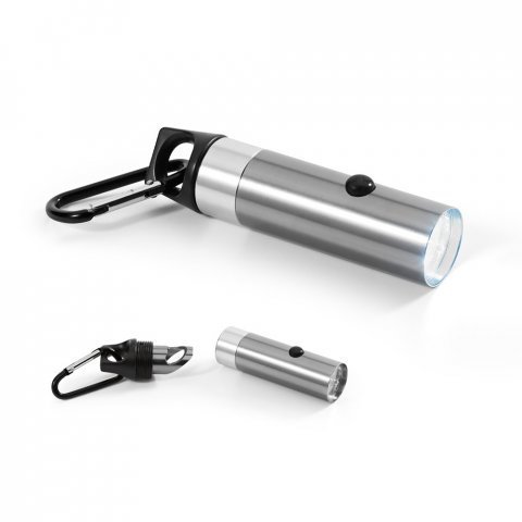 Lanterna em alumínio com 6 LEDs Lanterna em alumínio com 6 LEDs, abridor de garrafas e mosquetão. Incluso 2 pilhas CR2032. ø25 x 102 mm