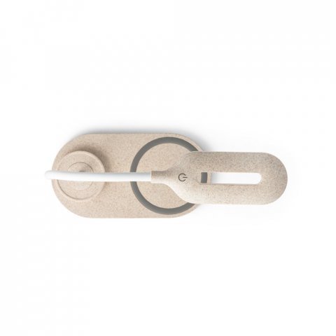 Luminária de mesa em fibra de palha de trigo e ABS com carregador por indução (wireless) super-rápido. A haste é flexível para ajustar a direção da luz e contém 20 LEDs que permitem uma iluminação até 3 níveis de intensidade. No topo da luminária encontra-se um botão touch para ligar, desligar e ajustar os níveis de iluminação. O carregador sem fios é de carregamento super-rápido, tendo uma potência até 15W. No local onde o equipamento é colocado tem um círculo com silicone para evitar que se mova. Incluso cabo USB-C de 1 m. Fornecido em caixa presente de papel kraft reciclado. A cor e o resultado da impressão nos materiais naturais pode variar entre produtos. 160 x 268 x 85 mm