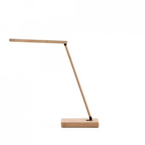 Luminária de mesa dobrável em bambu com carregador por indução (wireless), com 16 LEDS brancos e 9 amarelos. O carregador sem fios é de carregamento super-rápido, tendo uma potência máxima de 15W. Incluso cabo de carregamento USB-C de 1 metro. Fornecido em caixa presente de papel kraft reciclado. A cor e o resultado da impressão nos materiais naturais pode variar entre produtos. 432 x 110 x 37 mm | Caixa: 116 x 444 x 35 mm