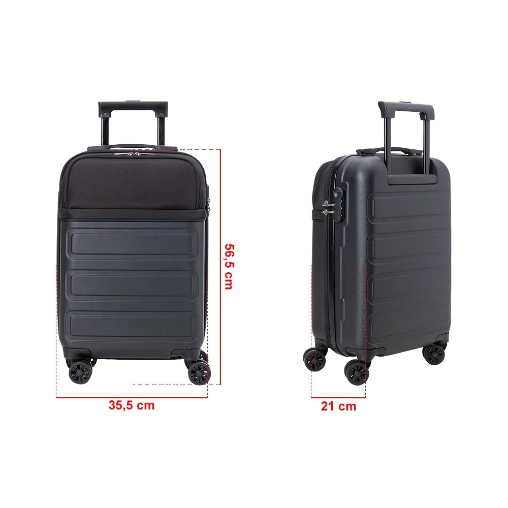 Mala de viagem com segredo, feita em plástico ABS e tecido, possui 2 divisões internas, sistema de carrinho de aço, alça de mão superior e lateral, rodas 360 graus e acompanha plaquinha para personalização. Especificações: - Altura  56,5 cm - Largura  35,5 cm - Profundidade  21 cm - Medidas aproximadas para gravação(CxL)  1,8 cm x 5,8 cm - Peso aproximado(g)  2437