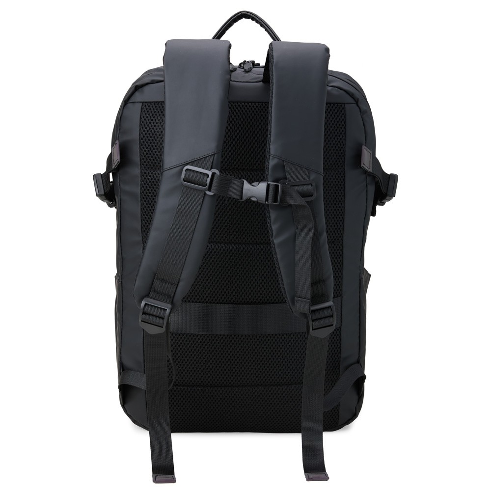 Mochila de 33 Litros confeccionada em couro sintético resistente à água. Contém três compartimentos, sendo um deles exclusivo para acomodar capacete de bicicleta e outro para notebook de 15,6" com revestimento aveludado. A mochila possui faixa e detalhes refletivos, bolsos externos nas laterais, bolso interno de plástico exclusivo para itens molhados, bolso interno de tela, alça para engate em mala de viagem, alça regulável revestida com espuma, parte traseira também revestida com espuma para maior conforto e fivelas para melhor expansão e segurança da mochila.