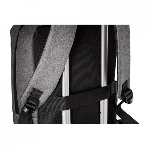 Mochila para notebook 15.6" em 300D de alta densidade 14 L Mochila para notebook em 300D de alta densidade com 2 divisórias almofadadas para notebook até 15,6" e tablet 10,5" e diversos bolsos interiores. Tem ainda bolso frontal, 2 bolsos laterais e banda para transporte em trolley. Parte posterior e alças são almofadadas. Capacidade até 14 L. 320 x 410 x 120 mm