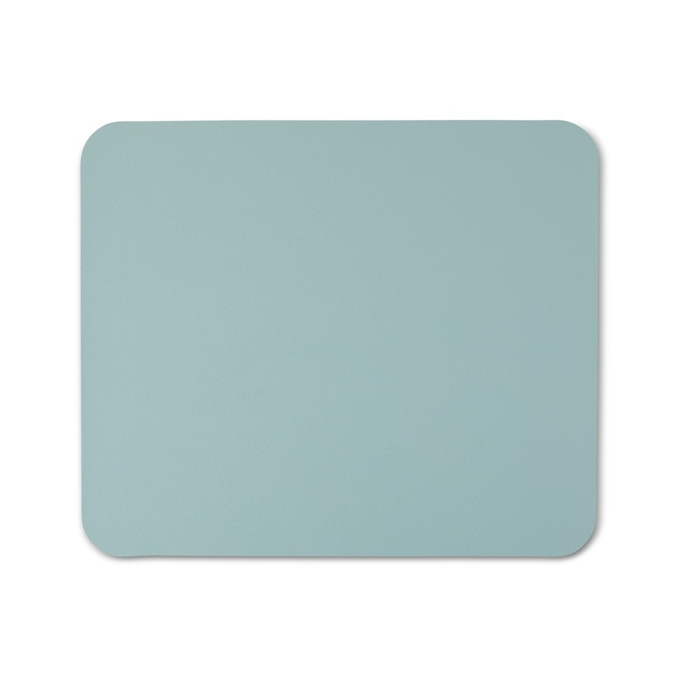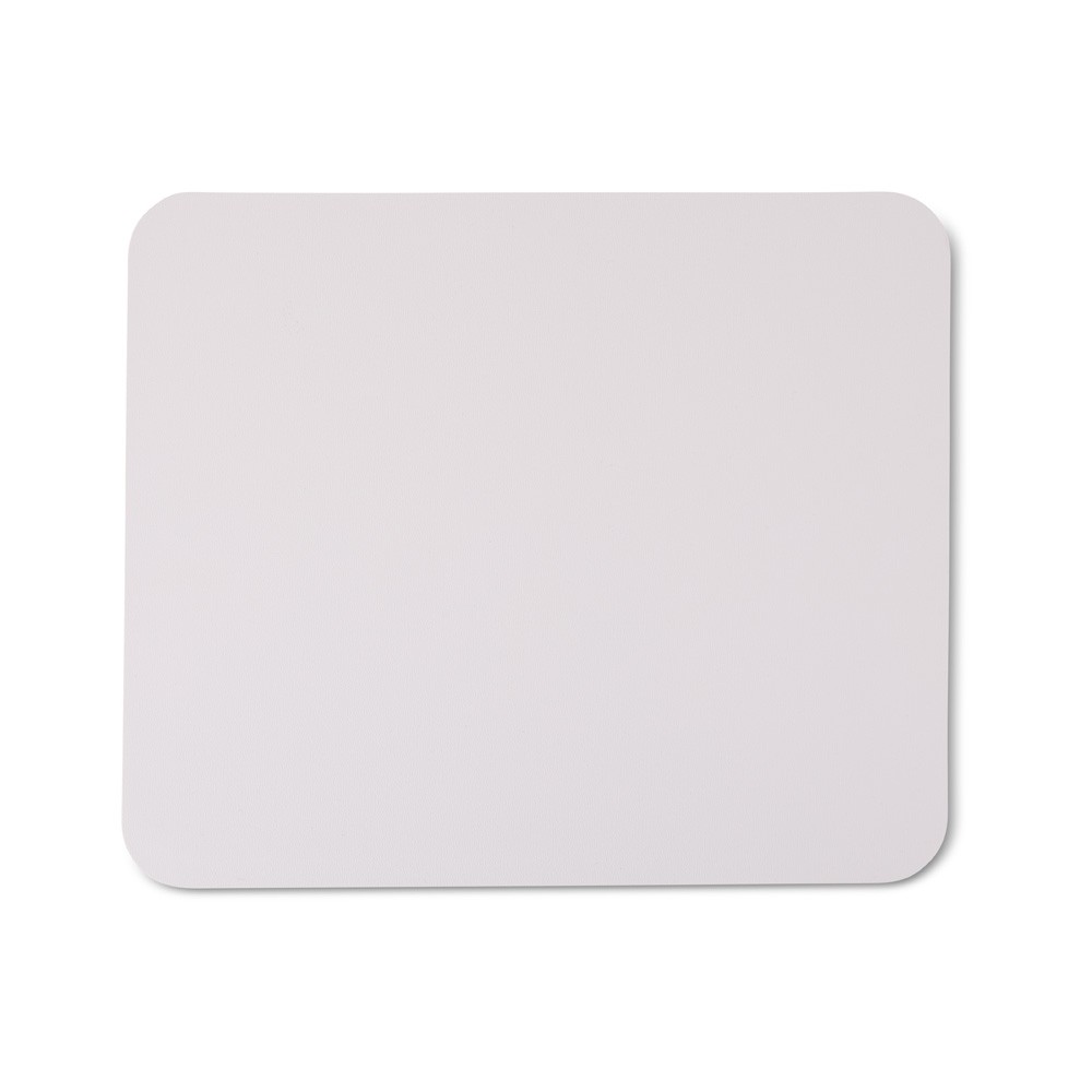Mouse pad em couro sintético, com formato retangular e resistente a arranhões.