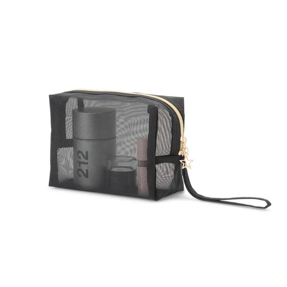 Nécessaire confeccionada em malha de nylon. Seu visual em malha, permite uma fácil visualização dos itens em seu interior. Os detalhes em dourado no zíper, adicionam um toque de elegância e sofisticação.