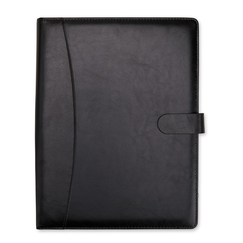 Organização impecável com estilo profissional. Nossa pasta executiva, feita em couro sintético de alta qualidade, acompanha um bloco de aproximadamente 20 folhas pautadas removíveis para anotações, suporte para caneta, bolsos para organizar folhas ou documentos, suporte para cartões, incluindo um com visor de identificação. Além disso, possui fechamento magnético, unindo praticidade e elegância em um único produto.