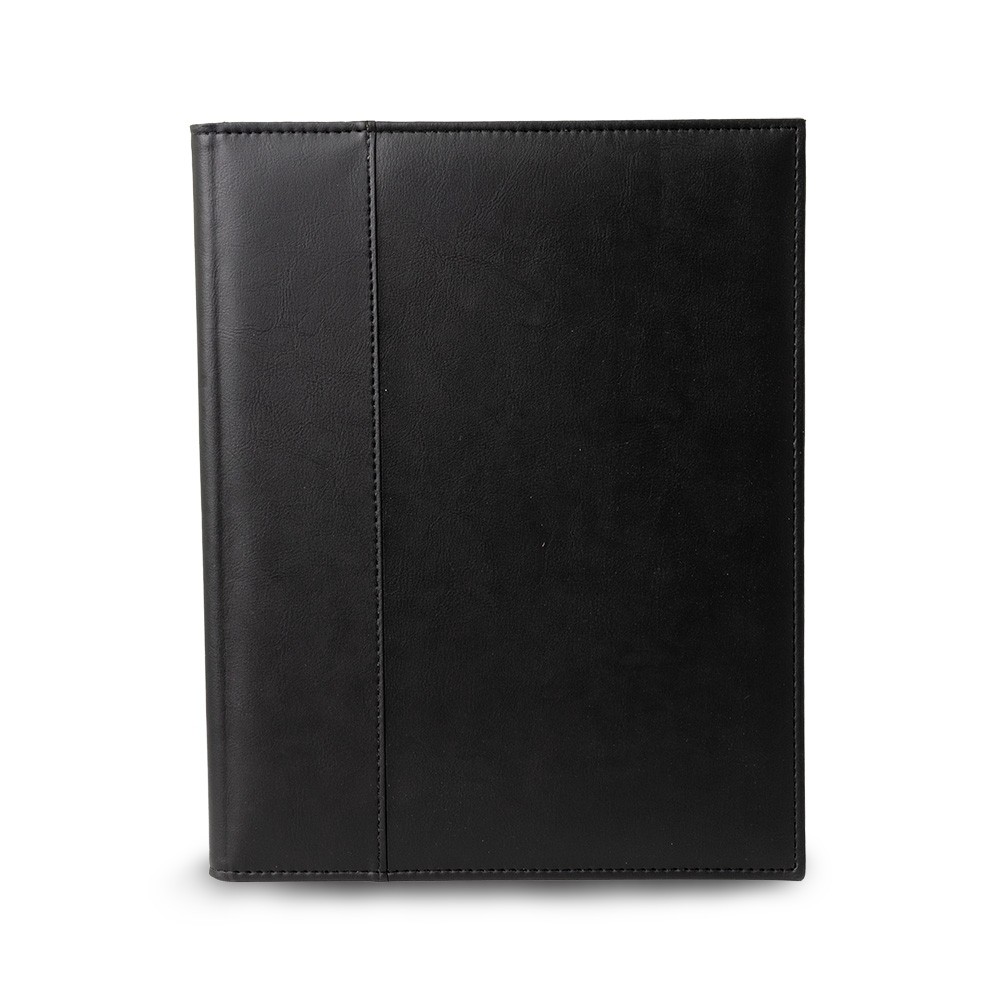 Pasta convenção de couro sintético, possui porta caneta, dois compartimentos, sendo um para arquivar documentos e um bloco com aproximadamente 15 folhas brancas não pautadas.