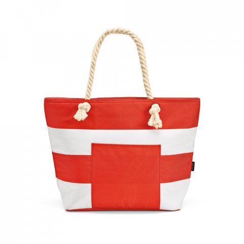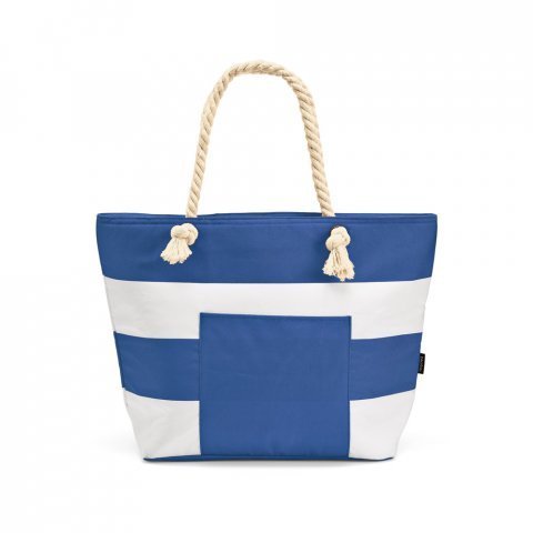Sacola térmica em 600D poliéster reciclado 16 L Sacola térmica em poliéster reciclado 600D e alça em algodão com 65 cm. Contém um bolso principal com isolamento e 1 bolso frontal. Capacidade até 16 L. Certificação EU Food Grade. 500 x 360 x 145 mm