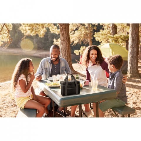 Sacola térmica em poliéster reciclado 600D com isolamento em PEVA 9.5 L Sacola térmica em poliéster reciclado 600D. Contém 2 compartimentos principais com isolamento em PEVA para facilitar a higienização e um bolso frontal com zíper. Capacidade até 9.5 L. Certificação EU Food Grade. 280 x 230 x 160 mm