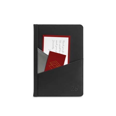 Agenda A5 em PU. Possui 2 bolsos exteriores na capa para guardar pequenos objetos e um marcador em fita. Está organizada num plano diário (70 g/m²). 148 x 210 mm