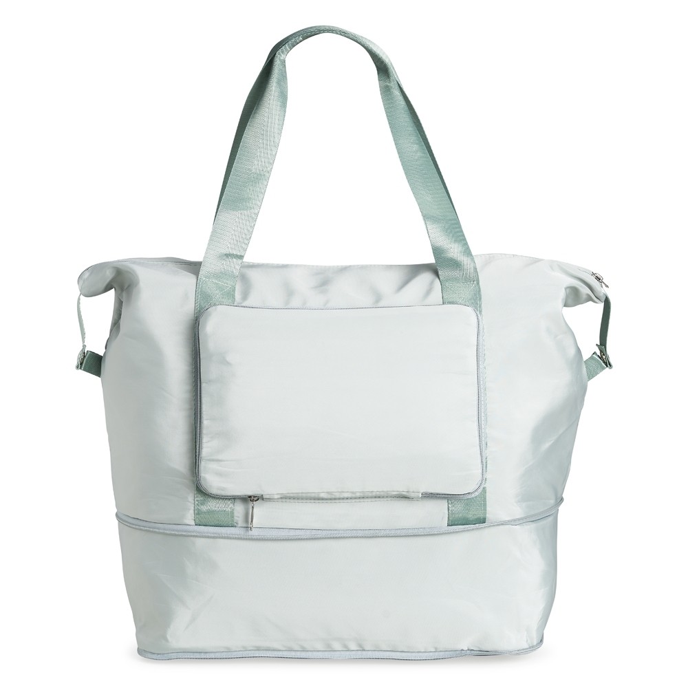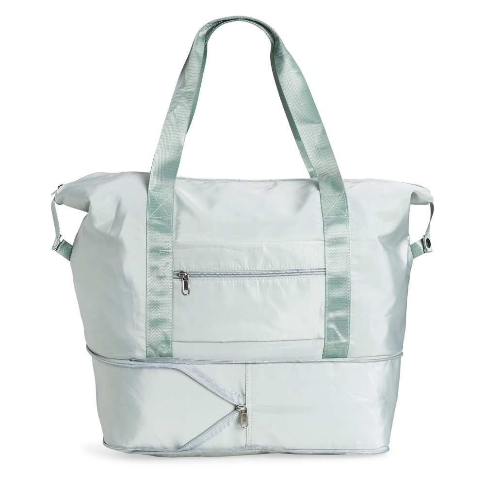 Bolsa dobrável e expansível de 40 litros em poliéster à prova dágua com dois compartimentos e bolsos internos. Sendo dois deles exclusivos para tênis e itens molhados. Contém bolso para encaixe em malas de viagem.