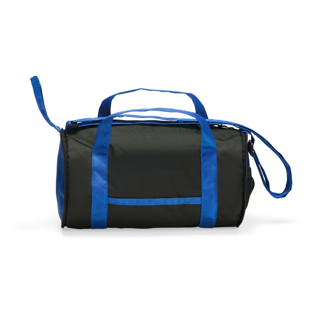 Bolsa esportiva em poliéster 420D resistente à água, com fechamento em zíper e capacidade de 6 litros. Quando dobrada, mantém formato arredondado com bolso telado e uma alça de mão para transporte. Aberta, possui dois bolsos externos: um frontal aberto e outro lateral em tela de nylon com elástico. Conta ainda com duas alças laterais fixas e uma alça transversal ajustável. Especificações: - Altura  16 cm - Largura  28 cm - Profundidade  16 cm - Medidas aproximadas para gravação(CxL)  8 cm x 12 cm (bolsa aberta) - 12 cm x 12 cm (bolsa dobrada) - Peso aproximado(g)  123