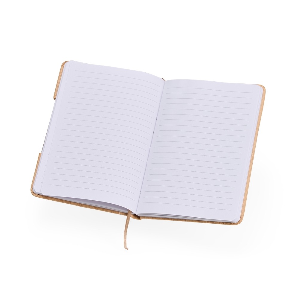 A caderneta feita para quem valoriza praticidade com um toque de estilo. Feita em plástico, sua capa se assemelha ao charme natural do bambu, chamando a atenção em qualquer lugar. Internamente, o marcador de cetim facilita o acesso às anotações, que ganham vida em 80 páginas brancas pautadas, prontas para organizar suas ideias, listas e inspirações. O grande diferencial? O suporte para celular embutido na capa, perfeito para acompanhar vídeos, chamadas e até mesmo reuniões. Especificações: - Altura  17,1 cm - Largura  12 cm - Espessura  1,2 cm - Medidas aproximadas para gravação(CxL)  16 cm x 8 cm - Peso aproximado(g)  170