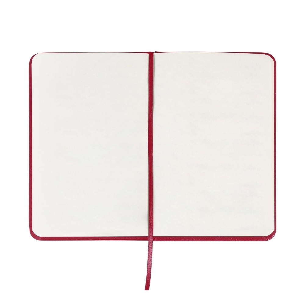 Caderneta de couro sintético com elástico para lacre e marcador de página em cetim, contém 80 folhas sem pauta.
