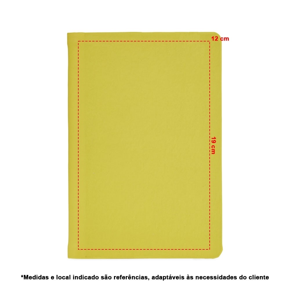 Caderneta emborrachada com wire-o, elástico para lacre e marcador de página em cetim. Possui páginas para dados pessoais, calendário de 2024 à 2026, página de contatos e aproximadamente 100 páginas em marfim com pauta.