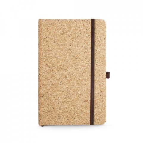 Caderno A5 de capa dura em cortiça. Contém 160 páginas lisas cor marfim, em papel proveniente de gestão florestal sustentável, fita separadora, suporte para esferográfica (não inclusa) e elástico para fecho do bloco. A cor e o resultado da impressão nos materiais naturais pode variar entre produtos. 140 x 210 mm