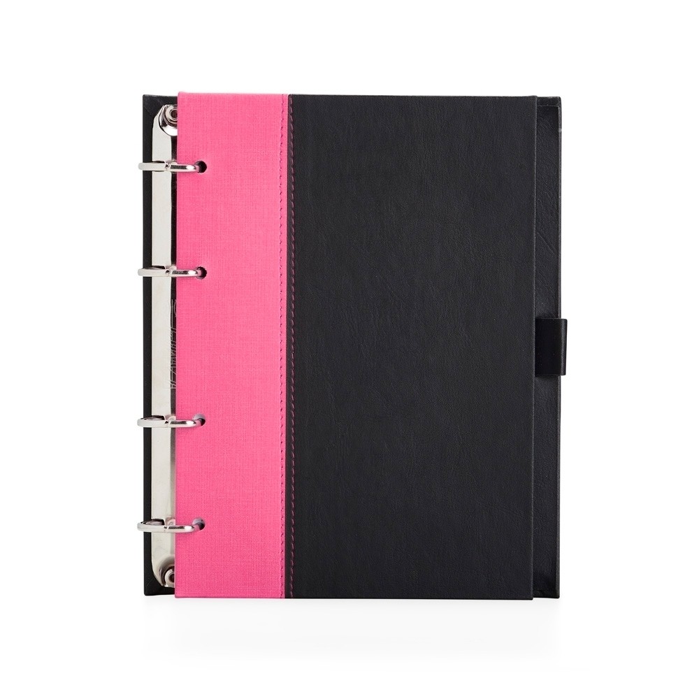 Caderno fichário em couro sintético. Possui suporte na lateral para caneta ( não acompanha) e aproximadamente 100 folhas.