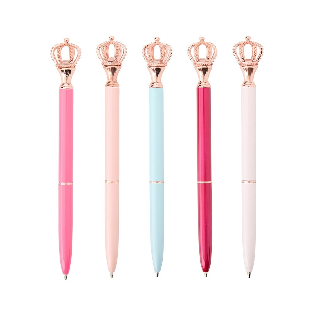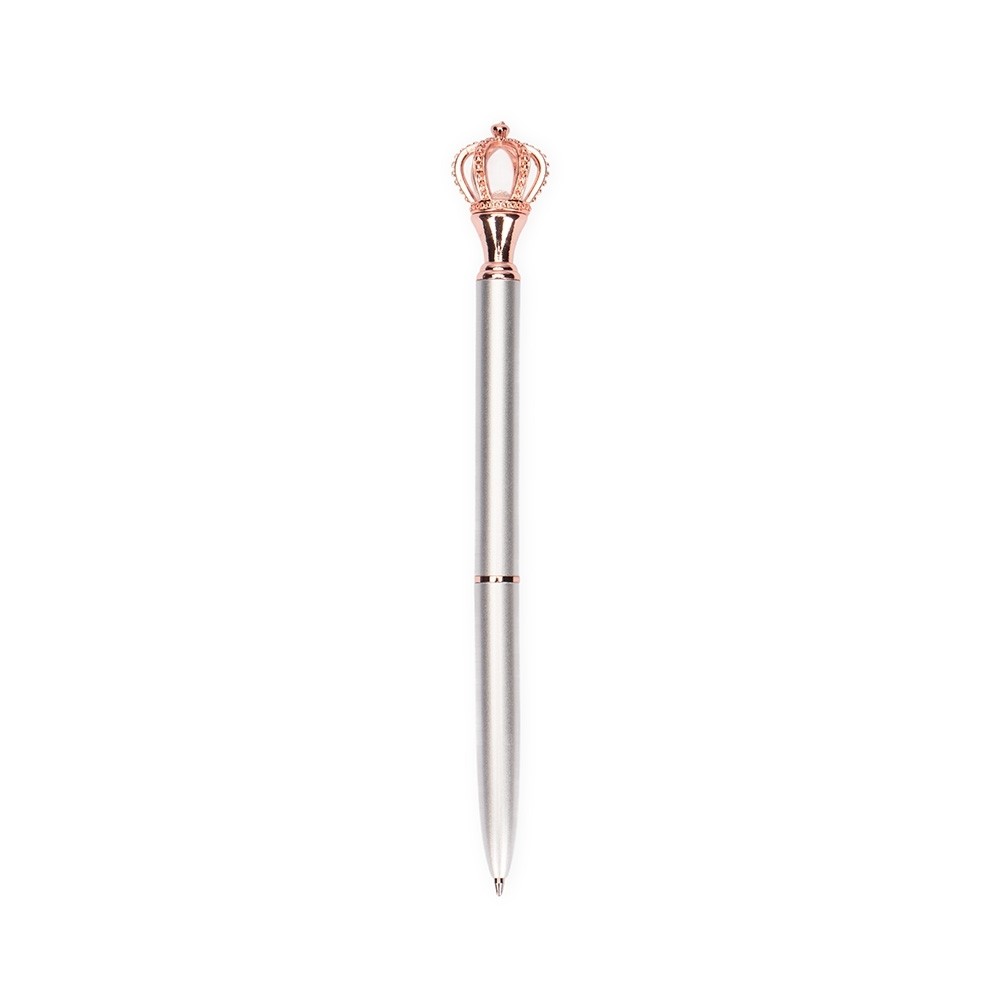 Rei ou Rainha da escrita? A nossa caneta metálica com acionamento por rotação, conta com uma coroa como detalhe decorativo no topo, agregando sofisticação e nobreza ao seu design. Possui ponta de 1.0 mm e carga esferográfica azul.