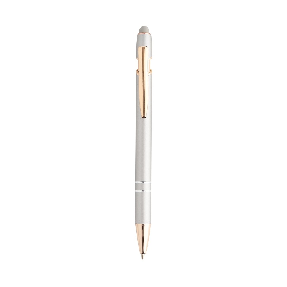 Caneta metálica touchscreen com acionamento por clique, carga esferográfica azul 1.0mm. Especificações: - Largura  1,5 cm - Comprimento  14,1 cm - Medidas aproximadas para gravação(CxL)  0,7 cm x 3,5 cm - Peso aproximado(g)  18