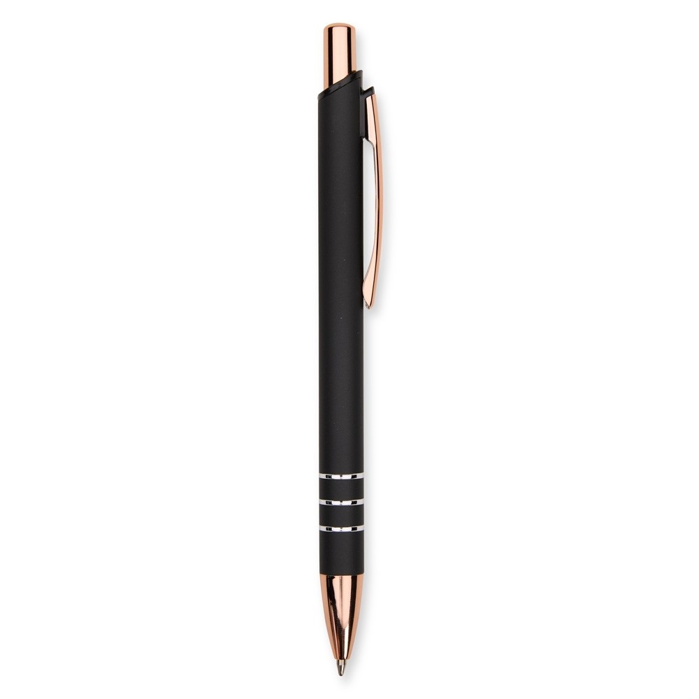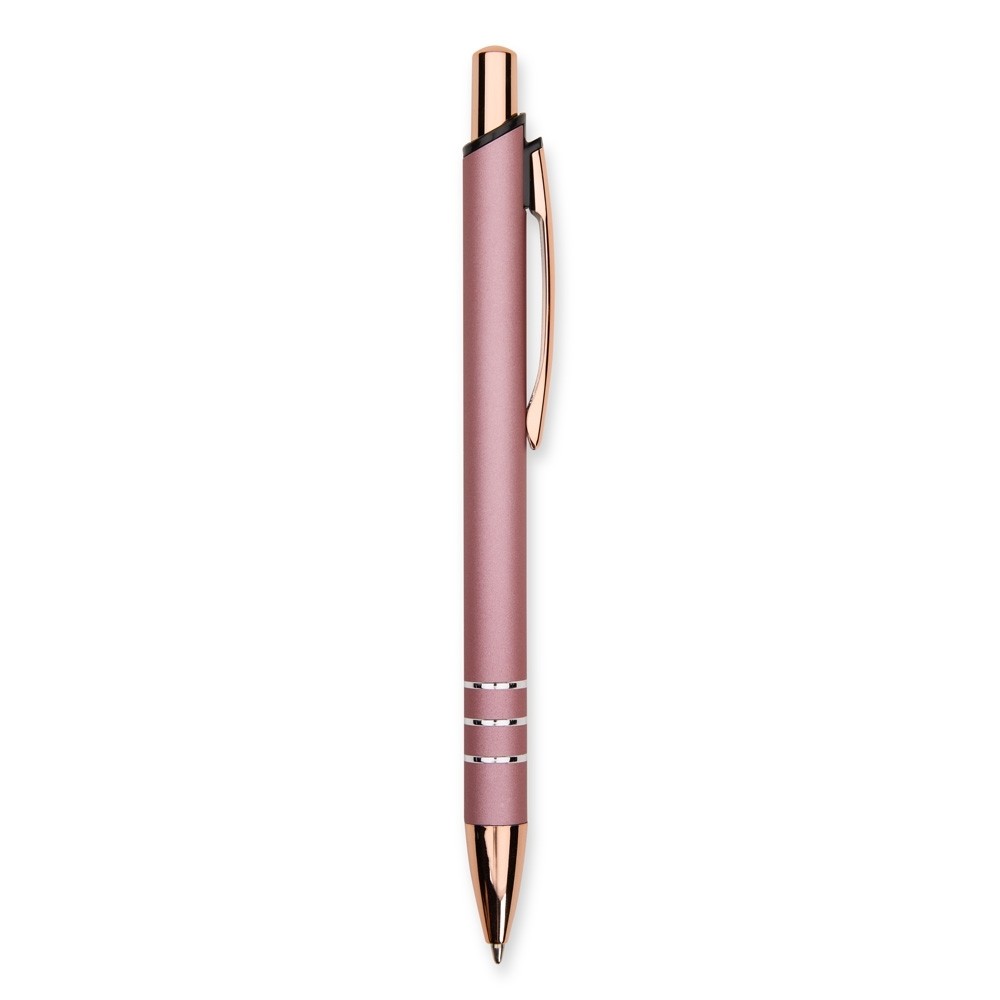 Caneta metálica com acionamento por clique e carga esferográfica azul de 1,0mm, oferecendo uma pegada leve para uma escrita mais precisa. Especificações: - Largura  1,5 cm - Comprimento  14,2 cm - Medidas aproximadas para gravação(CxL)  0,8 cm x 7 cm - Peso aproximado(g)  16