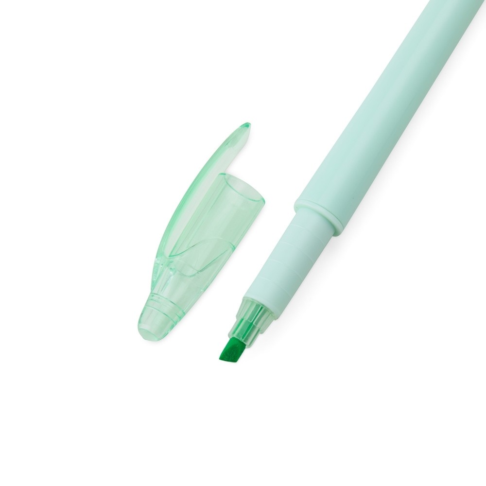 Caneta plástica com marca texto com tampa protetora para o marca texto, carga esferográfica azul 1.0mm e acionamento por rotação.