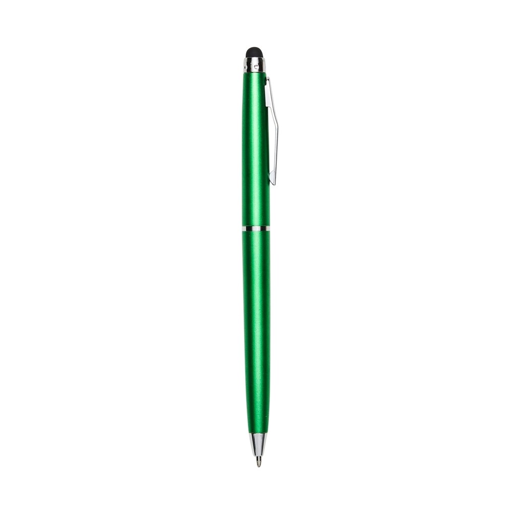 Caneta plástica touch screen com acionamento por rotação e carga esferográfica azul 1mm.