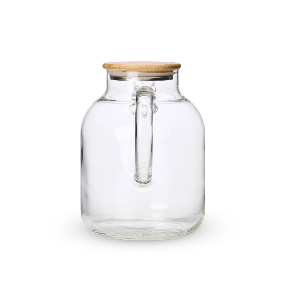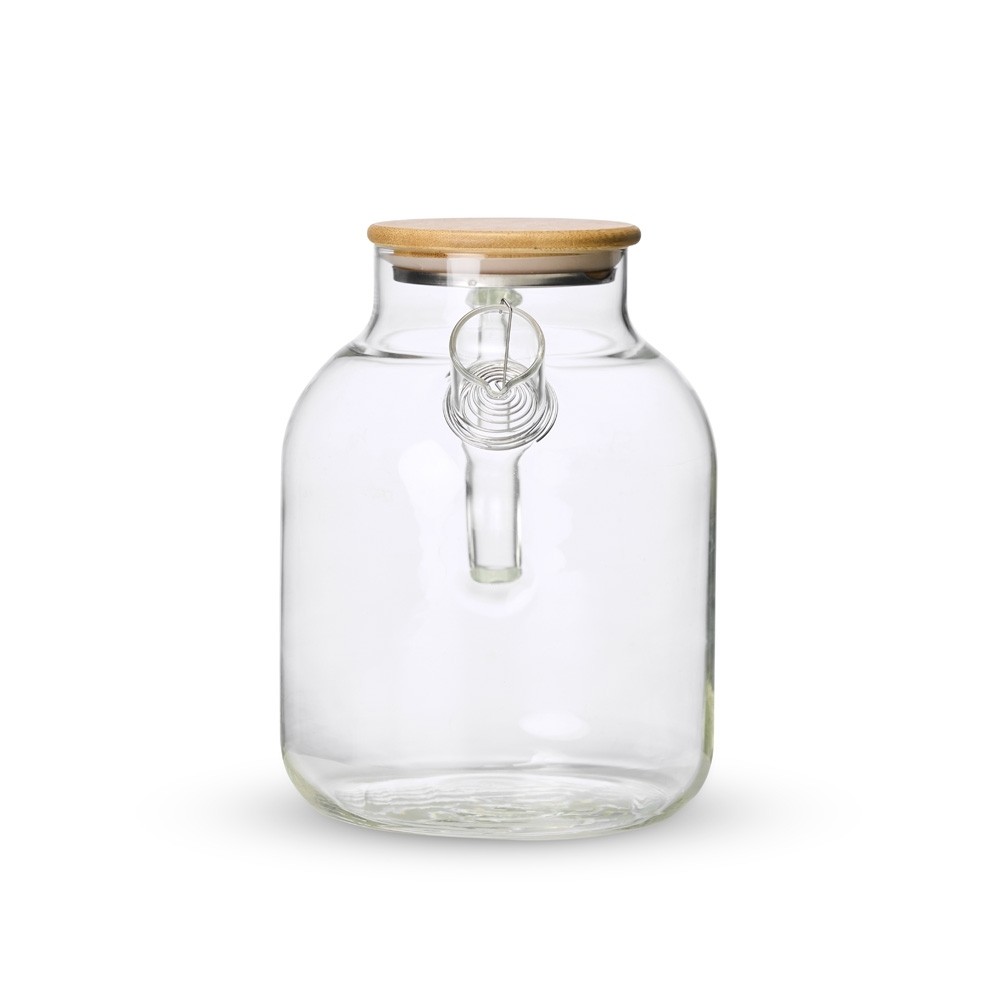 Chaleira em vidro borossilicato e capacidade máxima de 1,8 litro. Suporta variações de temperatura, pode ser levada a fogo baixo. Possui tampa em bambu com vedação para conservar a temperatura dos líquidos por mais tempo. Acompanha filtro de bico em alumínio.